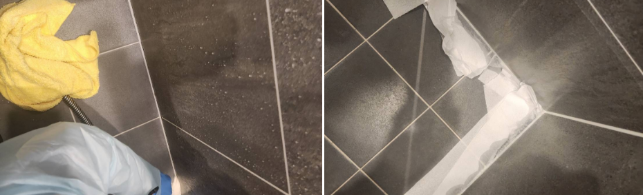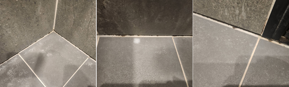 日常の清掃では取りきれない浴室の隙間のカビです。この細かい隙間のカビは一度発生してしまうと、日常清掃の限られた時間の中では完全に除去するのは、かなり負担が大きくなります。安易に市販薬などを使ってしまうと臭いの原因にもなってしまいます。