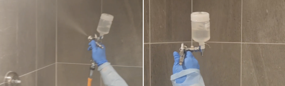 仕上げに動力噴射機で空間に浮遊している菌を全て除去します。MIST工法では空間のカビも取り去ることができ、発生も抑制することができます。