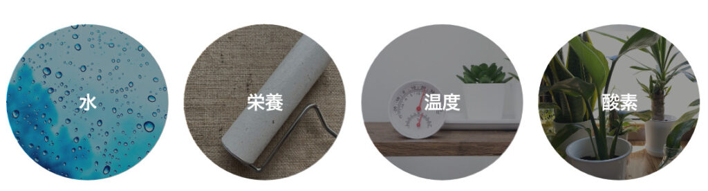 カビはどこにでも存在する微生物ですが、実際に「発生」し「増殖」するかどうかは、周囲の環境条件に大きく左右されます。本節では、カビが生育するために必要な基本条件を整理し、室内環境との関係を分かりやすく解説します。