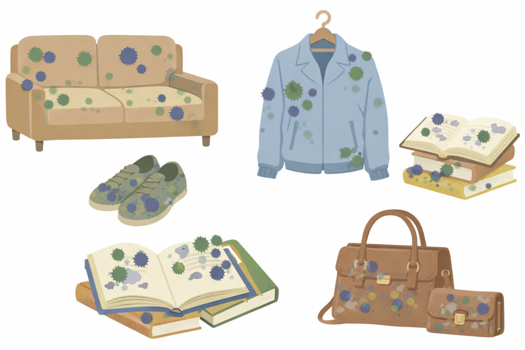 カビの問題は、健康や建物の劣化だけにとどまりません。日常生活の快適性を損ない、家具や衣類、食品などの私有財産に直接的な被害を与える点も、見過ごせない影響の一つです。本節では、カビが生活環境や財産に及ぼす具体的な影響について解説します。