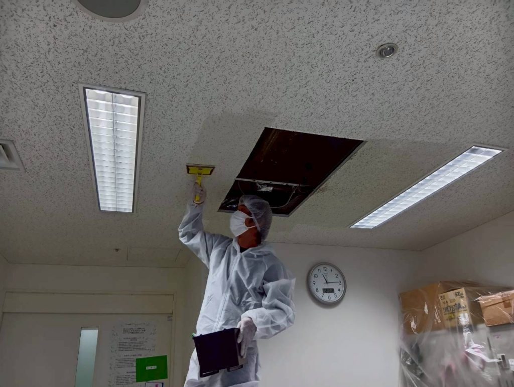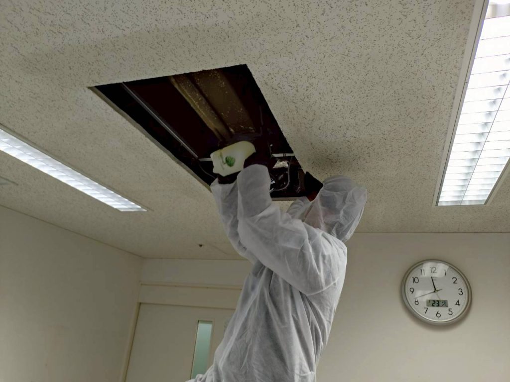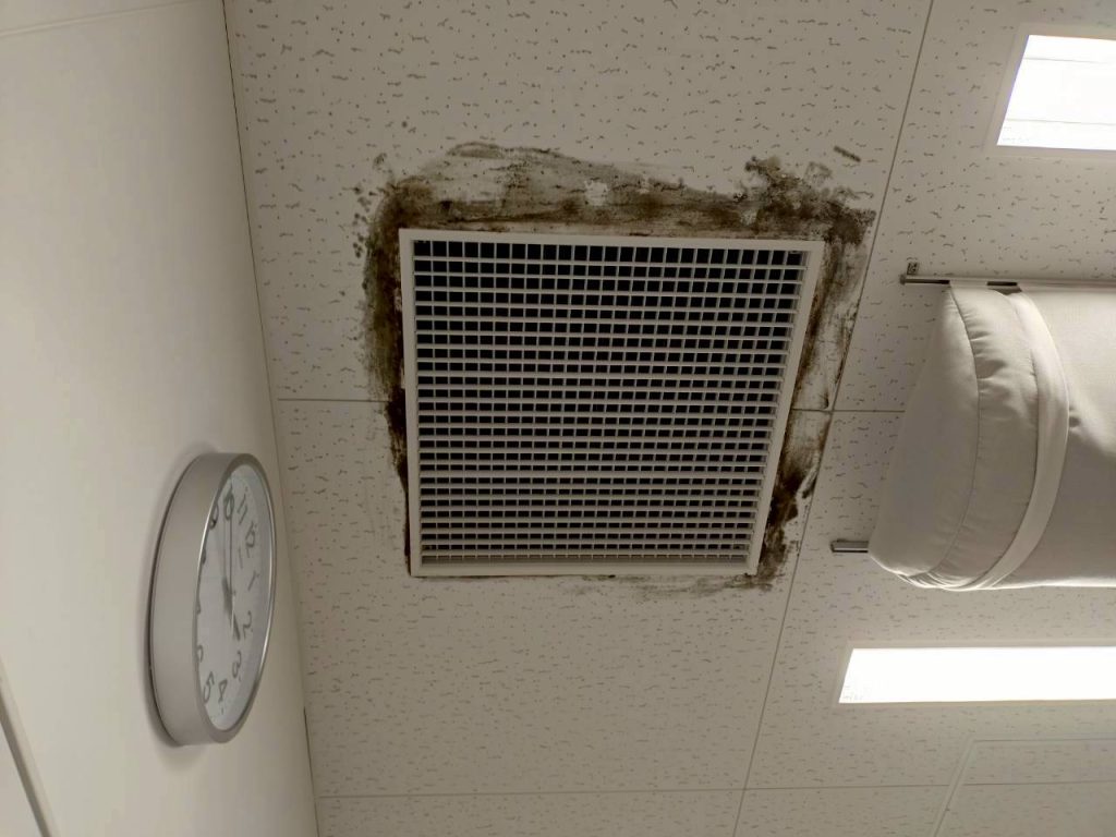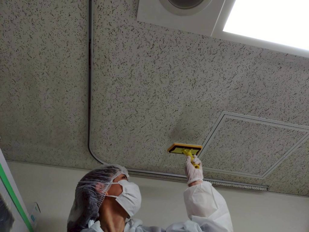 岐阜県岐阜市内に有ります医療施設様からのご依頼で、天井空調設備(ファンコイルエアコン)、天井ジプトーン、換気扇、ガラリ、アネモ、床面、クロス壁面のカビ除去及び除菌(アルコール)処理施工に伺ってきました。