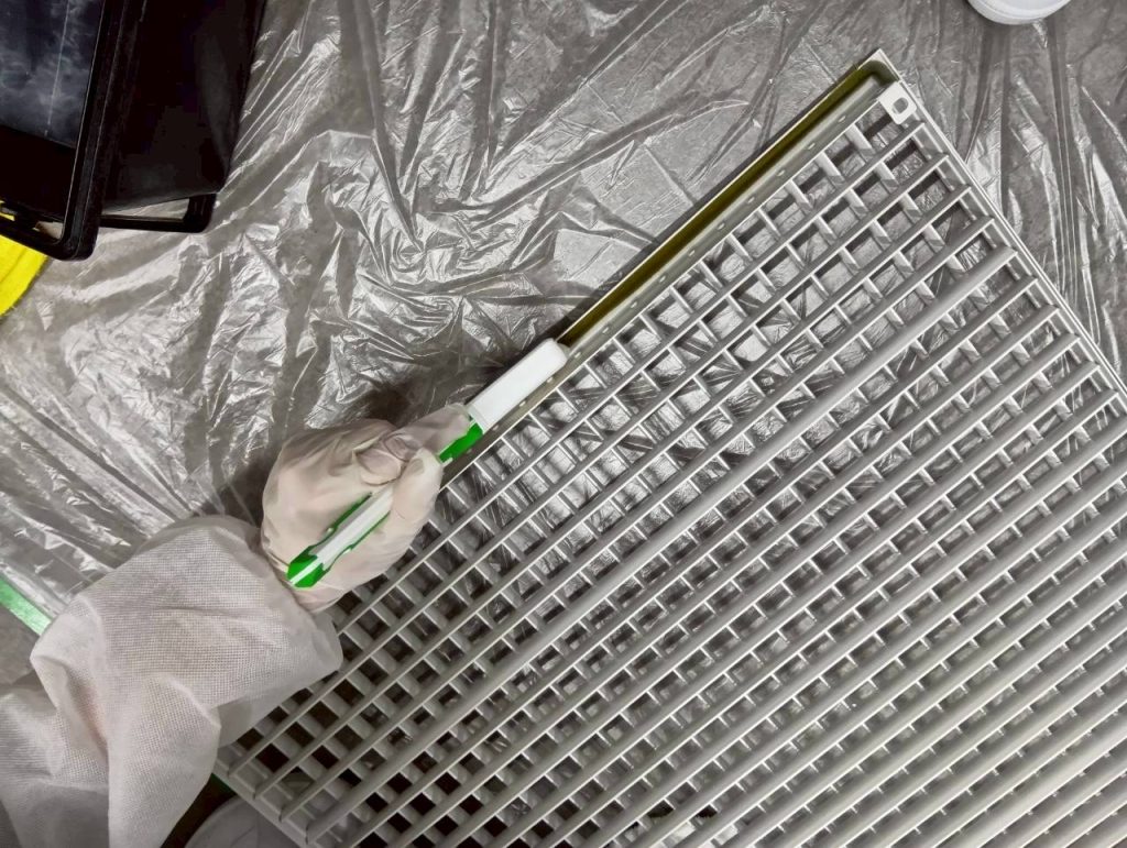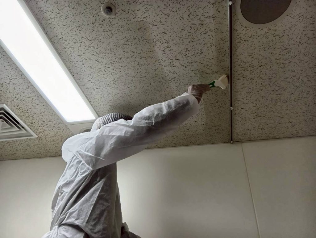 定期的に入らせていただいてる医療施設様で、施設がら、カビに対しての意識が高く常に清潔空間を維持し続けられてます。しっかりと菌糸と言われるカビの根まで専用の除カビ剤を駆使して除去していきます。仕上げにアルコール系除菌剤を空間噴霧します。